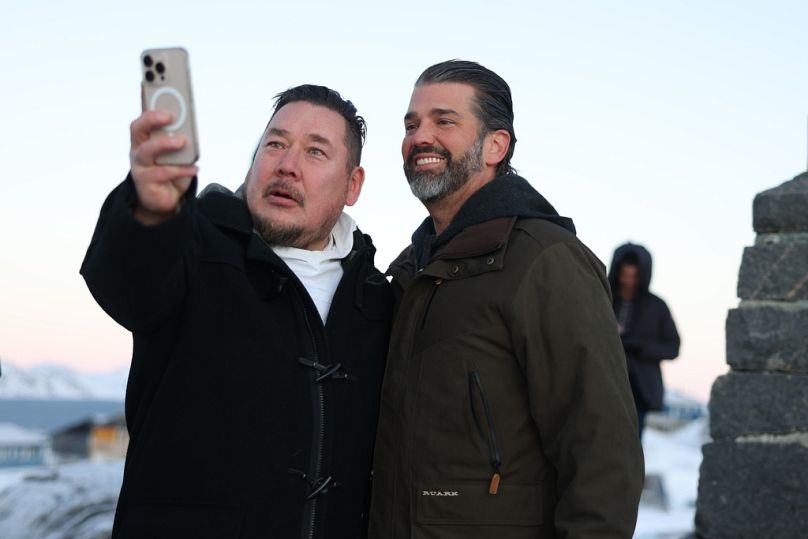 Le 7 janvier, Trump a réitéré son souhait que les États-Unis acquièrent le territoire danois autonome à des « fins de sécurité nationale » et a refusé d’exclure le recours à des embargos économiques ou à la force militaire pour atteindre son objectif. Le même jour, son fils, Donald Trump Jr., s’est envolé pour l’île, dans le cadre de ce qu’il a appelé une « excursion personnelle d’une journée ».