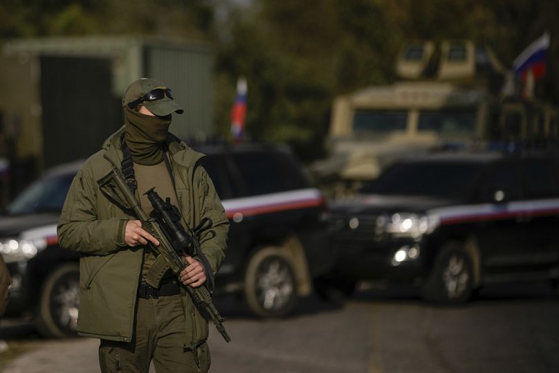 Un soldat russe se tient à côté d’un convoi militaire russe alors qu’il se déplace le long d’une route près de la ville méditerranéenne de Tartous, en Syrie, le lundi 16 décembre 2024.
