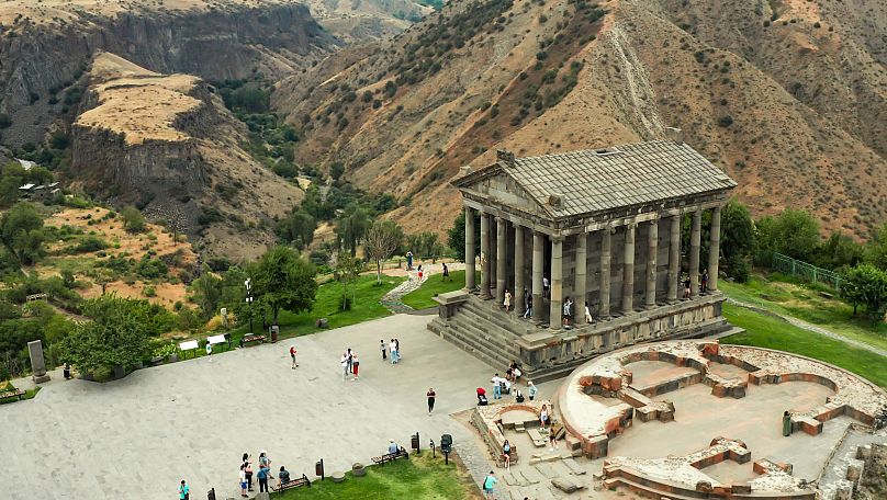 Sur une colline voisine se trouve le temple Garni, symbole de l’Arménie préchrétienne, construit en l’honneur du dieu solaire arménien Mihr.