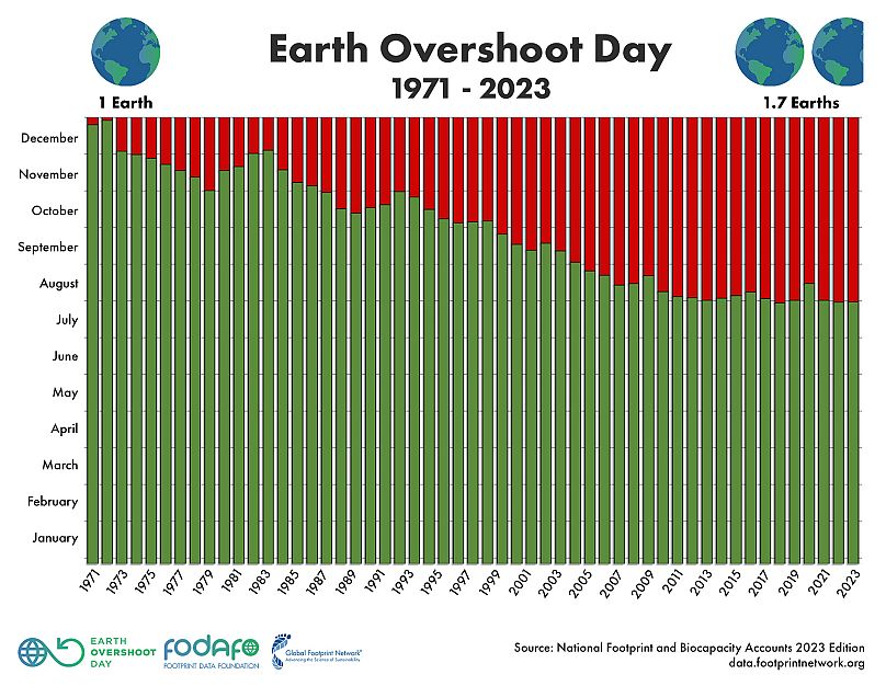 La date de cette année est des mois plus tôt que le premier jour de dépassement le 25 décembre 1971.