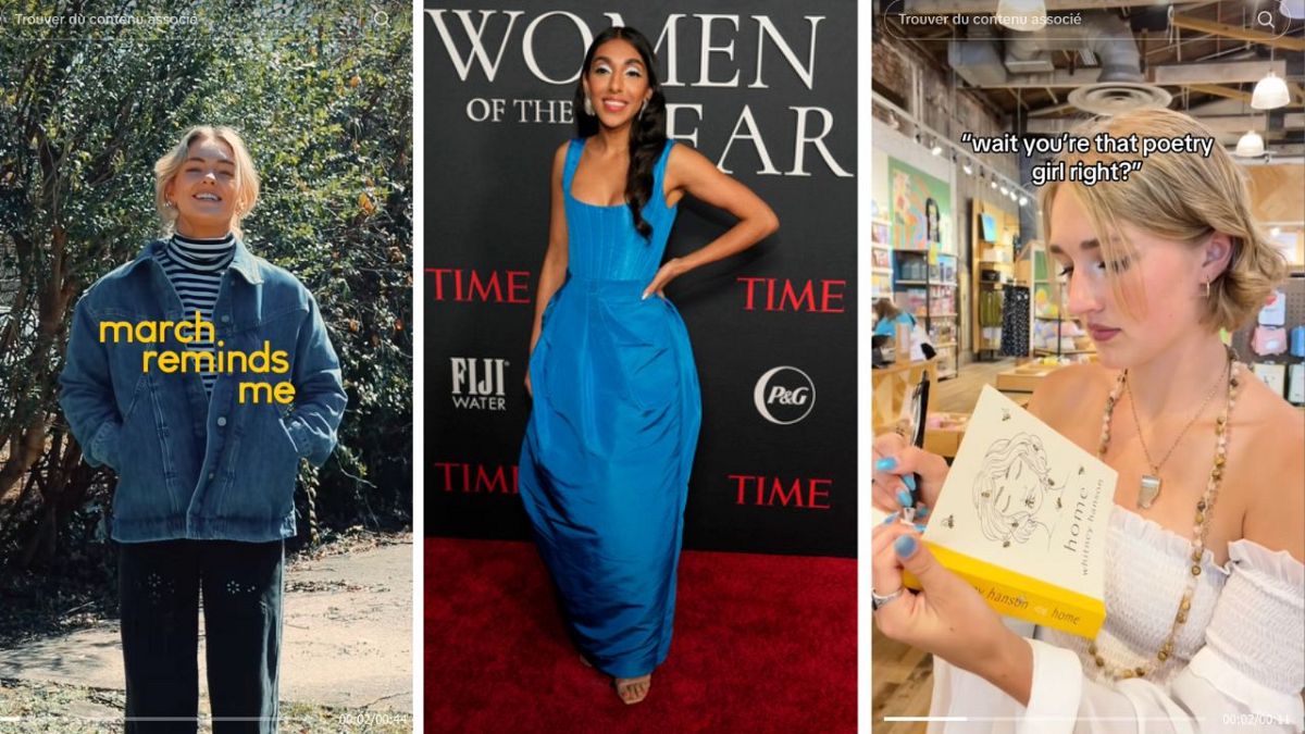 Le poète américain Whitney Hanson est connu pour lire ses versets sur la caméra sur une musique de fond douce. Ses vidéos Tiktok ont reçu plus de 78 millions de likes. D’autres écrivains, comme Ellen Everett, produisent du contenu hybride stylisé, à mi-chemin entre une performance et un vlog.