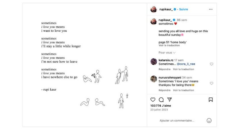 L’une des principales transformations du genre est passée par Instagram. Au début des années 2010, la naissance de la plate-forme préfigurait un monde où les images deviendraient encore plus importantes pour communiquer des idées. Et pourtant, c’est l’application où les poètes du 21e siècle ont trouvé Refuge pour partager leurs paroles. Des millions de publications sont publiées sous des hashtags comme #instapoetry et #instapoets.