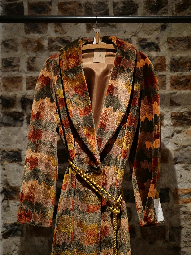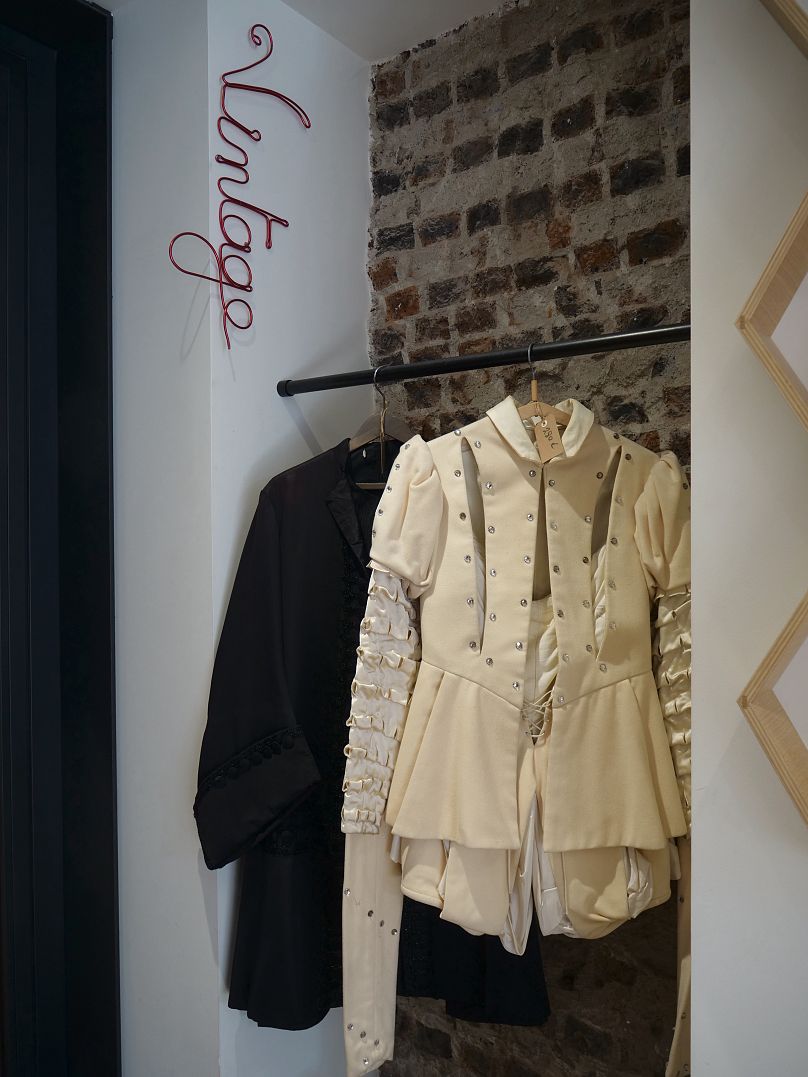 Chaque costume de théâtre est accompagné d’une étiquette distinctive, indiquant le nom de l’acteur ou du personnage qui y est monté sur scène, le titre de la pièce associée, l’année de la représentation et les prix qui varient de 30 € pour un chemise à 400 € pour un ensemble composé d’un manteau brodé, d’un gilet et d’une jupe-culotte.