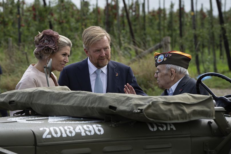 Marchant bras dessus bras dessous avec la reine des Pays-Bas, le vétéran américain de la Seconde Guerre mondiale Kenneth Thayer est revenu dans le petit village néerlandais que lui et ses frères d’armes de la 30e division d’infanterie ont libéré de l’occupation nazie il y a exactement 80 ans.