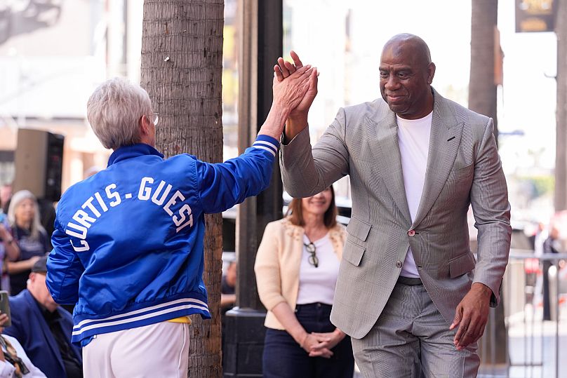 Elle a été rejointe par des amis célèbres – la légende de la NBA Magic Johnson et l’actrice oscarisée Jamie Lee Curtis.