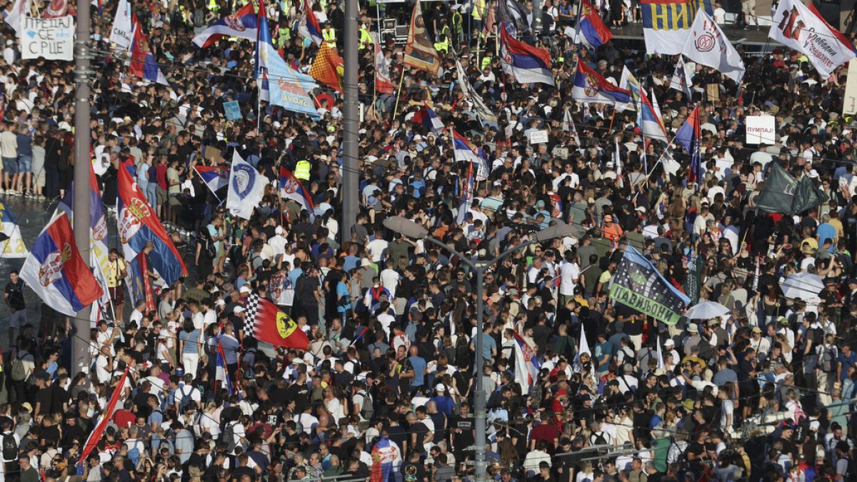 Des dizaines de milliers de personnes réunies à Belgrade exigeant des élections anticipées après des mois de manifestations stimulées par un effondrement mortel de la gare impartiale à la corruption du gouvernement.