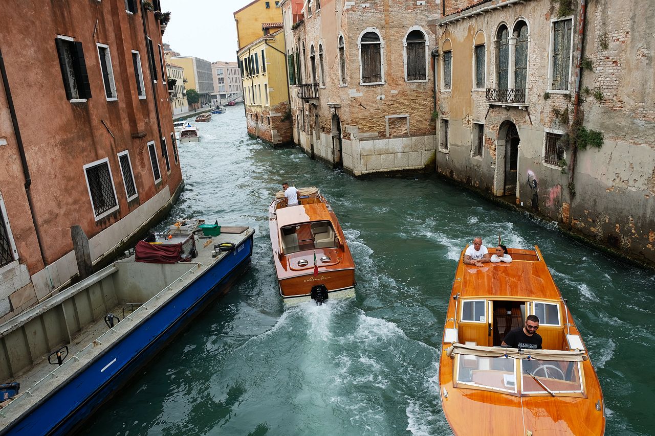 Le quartier de Rio Novo, où se trouve le pochoir, est l’un des plus animés de la ville, reliant la gare au Grand Canal. Le passage des bateaux à moteur provoque ce que les Vénitiens appellent « moto ondoso », des vagues qui contribuent à l’érosion de la lagune.