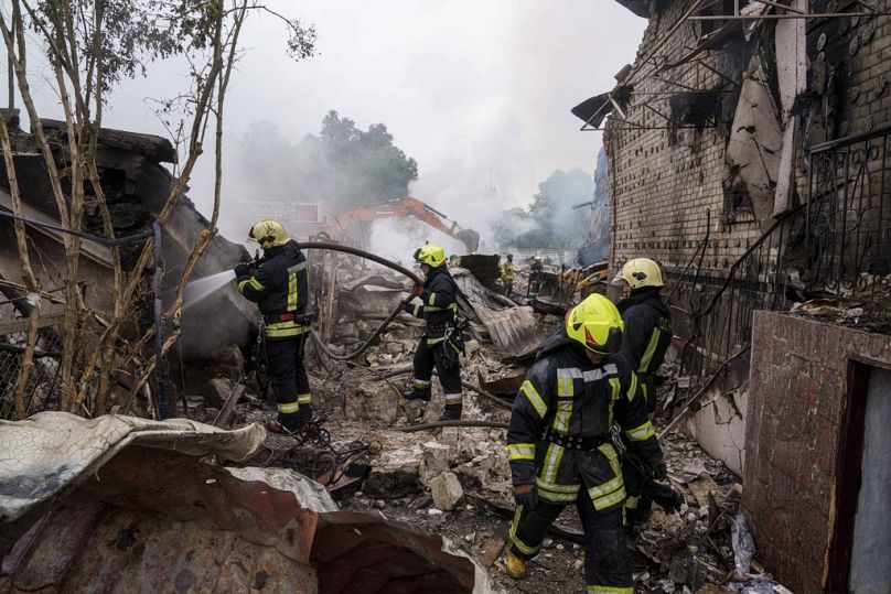 Les responsables ont déclaré qu’au moins 12 personnes avaient été tuées et des dizaines d’autres blessées dans ce qu’elles ont décrit comme la plus grande assaut aérien depuis l’invasion à grande échelle de l’Ukraine par la Russie en février 2022.
