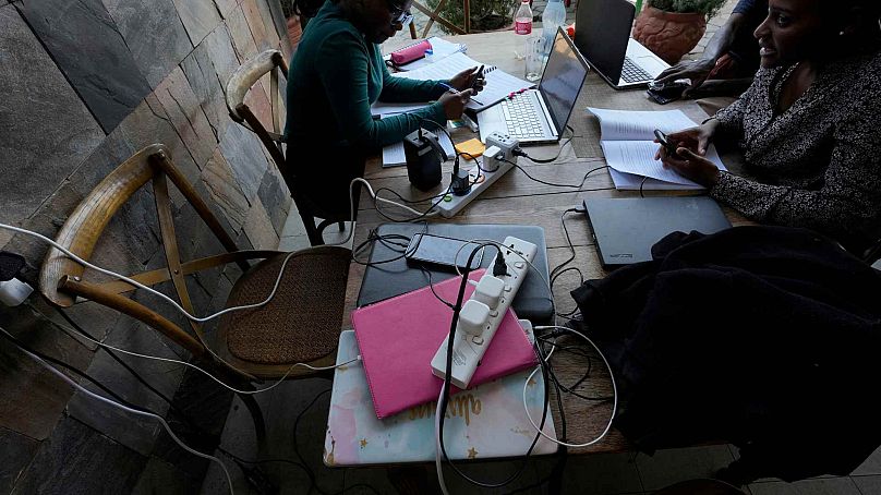 Musonda et d’autres s’entassent au Mercato Café de Lusaka, la capitale zambienne, non pas pour les sandwichs ou l’ambiance mais parce qu’il dispose d’un générateur diesel. Les tables sont encombrées de multiprises et de câbles tandis que les gens branchent des téléphones portables, des ordinateurs portables et, dans le cas de Musonda, un bureau à domicile. C’est la seule façon pour sa petite entreprise de voyages de survivre.