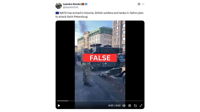 Une vidéo circulant en ligne prétend à tort à montrer des chars britanniques en train de s’amuser dans la capitale estonienne de Tallinn dans le cadre d’un plan de l’OTAN pour « attaquer » la ville russe de Saint-Pétersbourg.