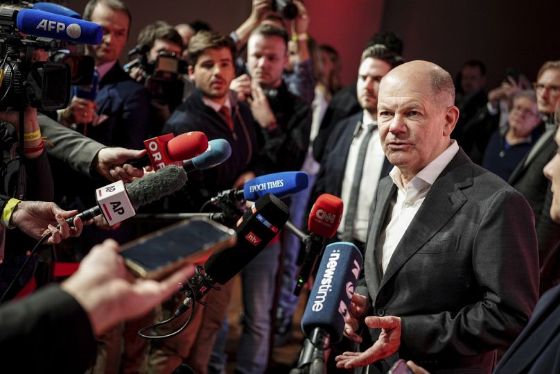 Le leader allemand, dont la coalition au pouvoir s’est effondrée menant à cette élection anticipée, dit que la question la plus difficile à laquelle l’Allemagne est confrontée dans les semaines et les mois à venir est la relation avec les États-Unis, en particulier dans le domaine du commerce.