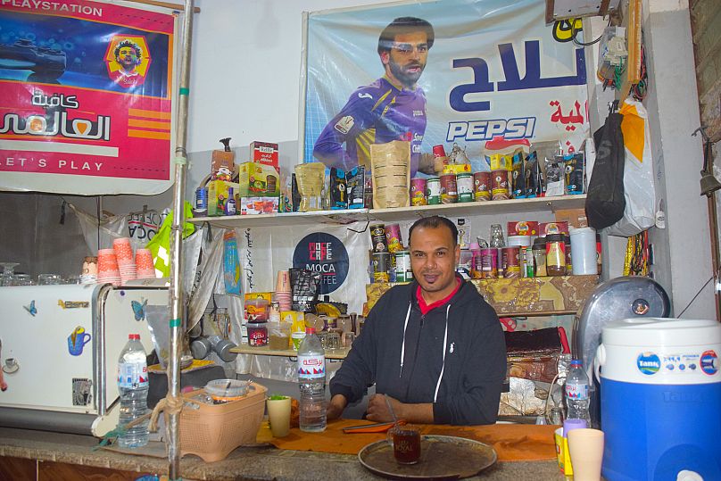 En arrivant au petit Café El-Alemy au bord de la ville 15 minutes après le début du match avec une escorte de police attentive, si Tardy, accompagnant les L’Observatoire de l’Europe en voyage, l’image de Salah était si omniprésente qu’elle était impossible à manquer.