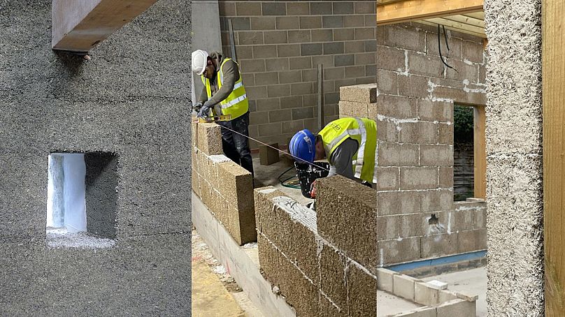 Il est fabriqué à partir d’un mélange soigneusement calibré de chènevis de chanvre – le noyau interne séché de la plante de chanvre – mélangé à de la chaux et de l’eau.