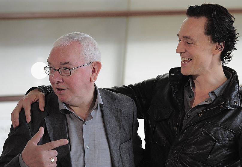 Terence Davies avec l’acteur britannique Tom Hiddleston faisant la promotion du film « The Deep Blue Sea » au 59e Festival du film de San Sebastian.