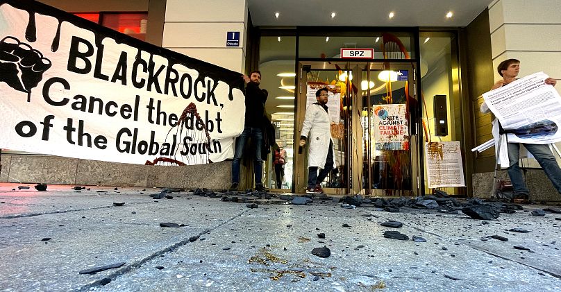 Les actions d’octobre de l’année dernière ont vu des membres du groupe de campagne Pour de la mélasse – pour représenter le pétrole – à l’entrée des bureaux de BlackRock, couper la circulation sur l’Odeonsplatz à Munich et se coller aux voitures du siège de BMW.