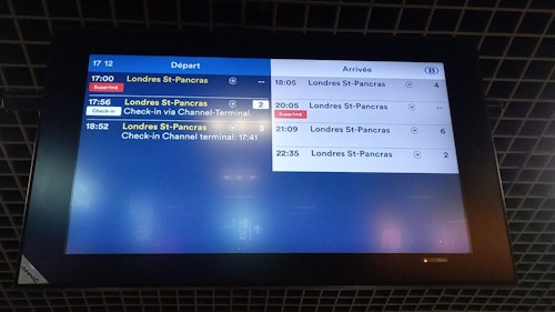 La page de mise à jour du statut d’Eurostar indique 12 services annulés mardi matin, en commençant par le train de 6h40 d’Amsterdam Centraal à St Pancras et en terminant par le train de 11h12 qui devait partir de Paris Gare du Nord.