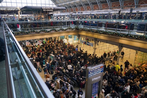Scènes de chaos à la gare internationale de St Pancras à Londres