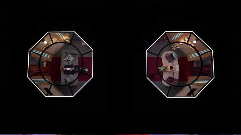Les candidats se sont tous alignés pour entrer dans les capsules dystopiques, qui sont souvent filmées d’en haut avec l’obscurité qui les entoure…
