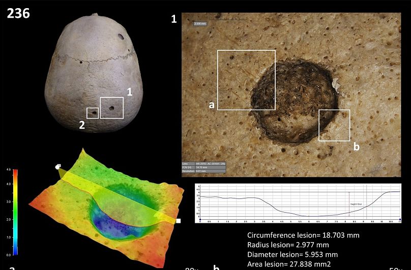 L’équipe a découvert les marques de coupure et analysé le deuxième crâne à l’aide d’une microscopie 3D à haute résolution.