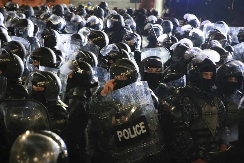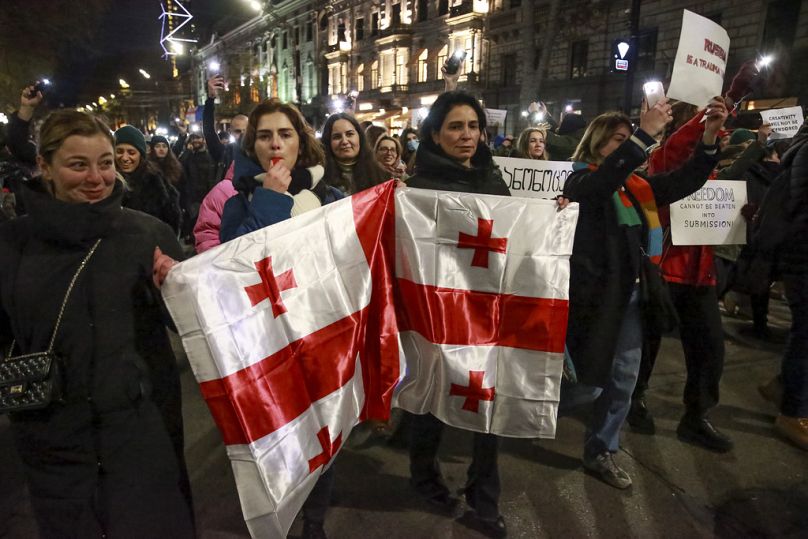 Les manifestants sont descendus dans les rues en octobre pour dénoncer le résultat des élections, et les manifestations ont augmenté plus en novembre, lorsque Georgian Dream a annoncé qu’il gelerait les pourparlers d’adhésion de l’UE jusqu’en 2028.