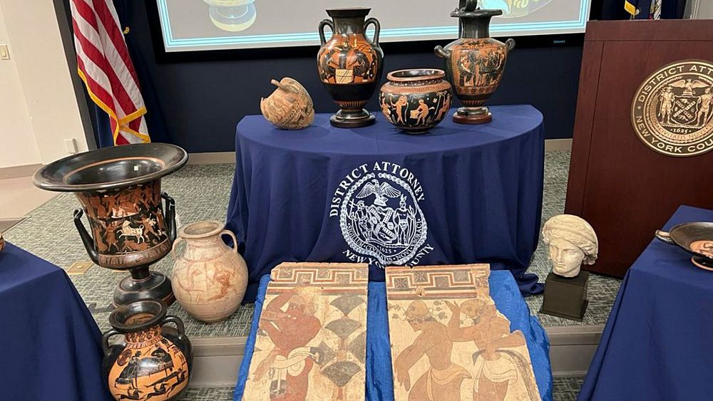 Certains des objets ont été remis aux autorités italiennes dans les bureaux du procureur du district de Manhattan, Alvin Bragg.