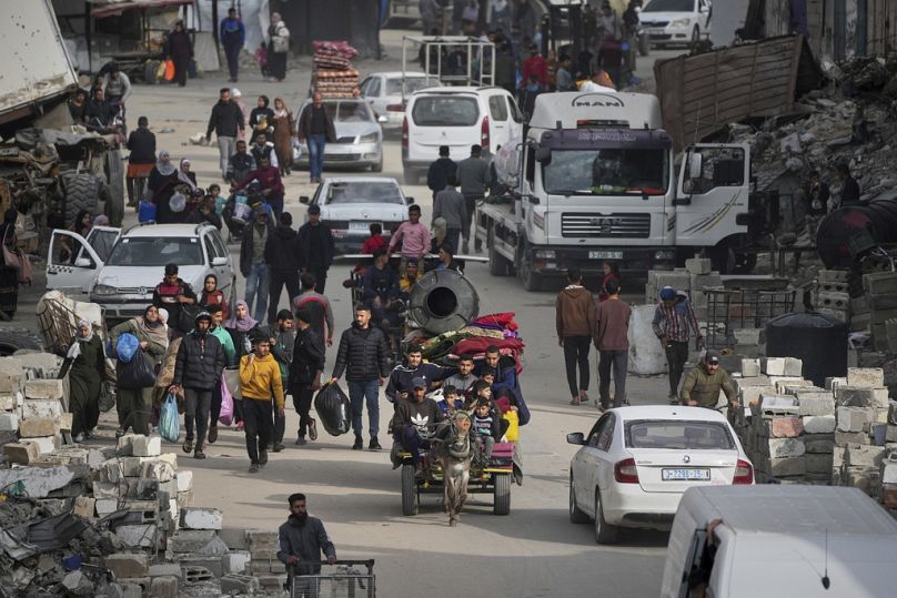 Les Palestiniens pouvaient être vus se promener dans les rues, chacun portant au moins un sac, tandis que d’autres avaient des charrettes empilées de biens. Les gens ont tiré les chariots eux-mêmes ou ont utilisé des motos et des ânes.