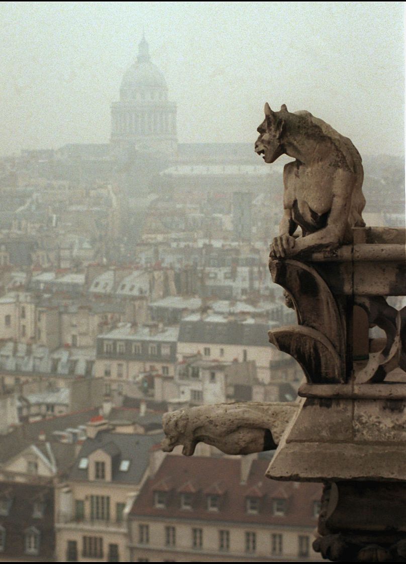 Les chimères que nous associons aujourd’hui à Notre-Dame (et au prototype des personnages Disney) datent du milieu du XIXe siècle. Le Bossu de Notre-Dame de Hugo, publié en 1831, suscite un regain d’intérêt pour Notre-Dame, alors en ruine. Il a galvanisé un énorme projet de rénovation qui a duré 21 ans, de 1843 à 1864, ce qui donne l’impression que les rénovations actuelles quinquennales semblent vraiment rapides.