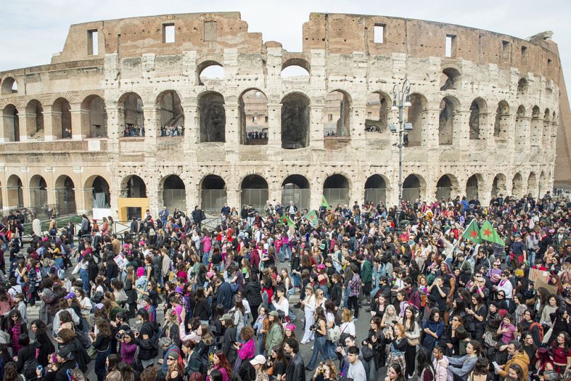 À Rome, la démonstration s’est concentrée sur la lutte contre la violence entre les sexes et la commission de l’écart entre les sexes. La ville a accueilli la plus grande manifestation d’Italie, mais les Italiens marchaient dans 60 villes à travers le pays pour sensibiliser à la violence contre les femmes. Le slogan de la manifestation, «pas un moins», a fait écho à la lutte en cours contre les féminides et la violence sexiste.