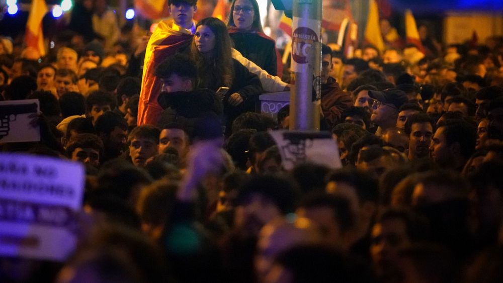 La manifestation a été déclenchée par la confirmation de l’accord signé jeudi entre le Parti socialiste et le parti séparatiste catalan Junts, dirigé par Carles Puigdemont, qui devrait également accorder une amnistie à Puigdemont et à d’autres personnes impliquées dans l’échec de la tentative de sécession de 2017.