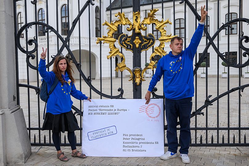 Les manifestants à Freedom Square dans la capitale Bratislava ont comparé la mesure à la loi de « l’agent étranger » de la Russie, qui a été critiquée comme répressive, avant de se rendre au palais présidentiel pour exhorter le président Peter Pellegrini à opposer son veto au projet de loi.