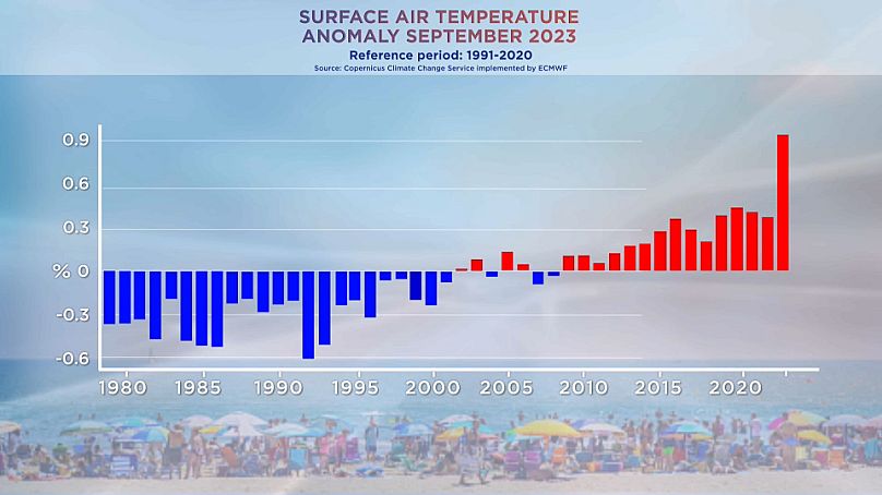 En Europe, le mois de septembre a été le plus chaud jamais enregistré, avec une énorme anomalie de température de 2,5 degrés Celsius au-dessus de la moyenne.