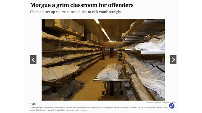 Celui-ci mène à un article publié en septembre 2016, qui traite également d’un groupe condamné à visiter une morgue, cette fois à San Diego.