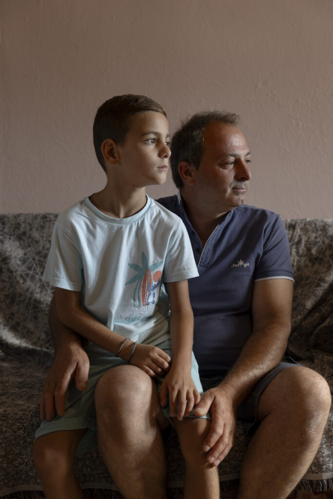 Dans un appartement à deux chambres, Konstantinos Papaioannou vit avec sa femme, ses deux enfants et sa mère. L’ancienne maison de l’agriculteur de 51 ans dans le village de Metamorfosi est une coquille vide: la moisissure dans le plâtre, la ligne d’inondation marquée par une bague sale au-dessus de la porte.