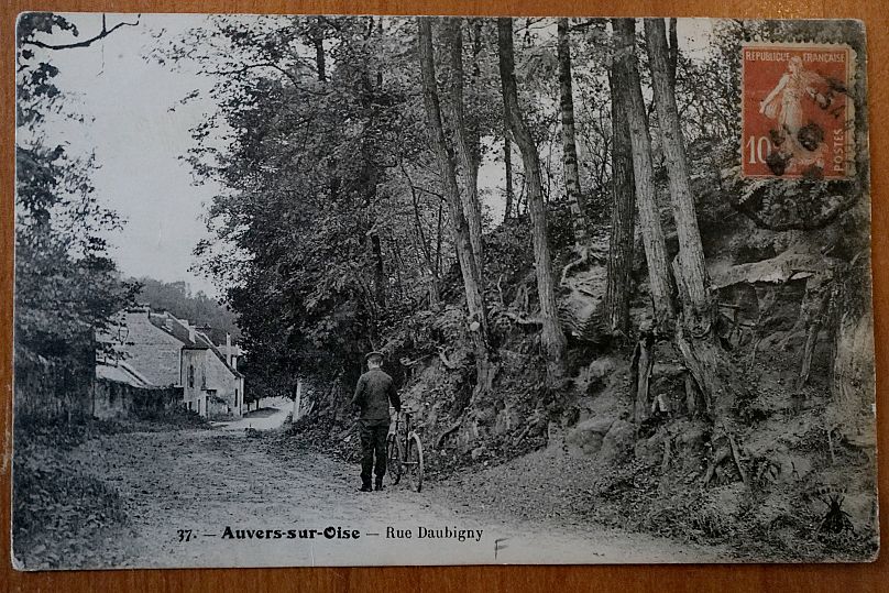 Il a fait la découverte après avoir reconnu que la scène représentée dans la peinture correspondait à une carte postale fanée montrant un homme debout à côté d’un vélo sur une ruelle dans le village d’Auvers-sur-Oise, où Van Gogh a passé ses dernières semaines. La carte postale, qui comprenait le nom de la rue, a offert une avance cruciale.