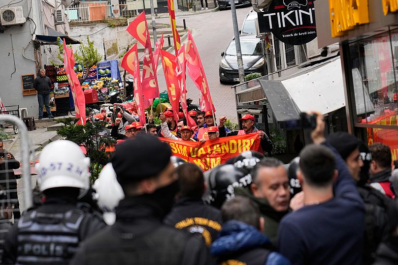 En Turquie, May Day a servi de plate-forme non seulement aux droits du travail, mais aussi à des appels plus larges pour respecter les valeurs démocratiques, car les manifestants prévoyaient de protester contre l’emprisonnement du maire de l’opposition d’Istanbul, Ekrem İmamoğlu.