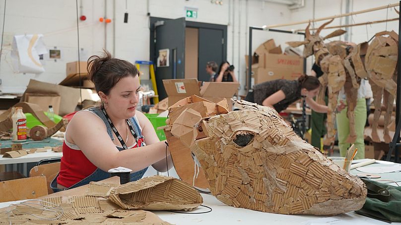 « C’est agréable de collaborer avec des gens et de faire partie de ce projet car il s’agit d’un grand projet mondial, qui voyage dans le monde entier. J’ai tout fabriqué ici, depuis le début, comme les os, où l’on met la peau par-dessus, jusqu’aux cornes, aux têtes et aux articulations », explique Faith Duffy, étudiante en deuxième année, à L’Observatoire de l’Europe Culture.