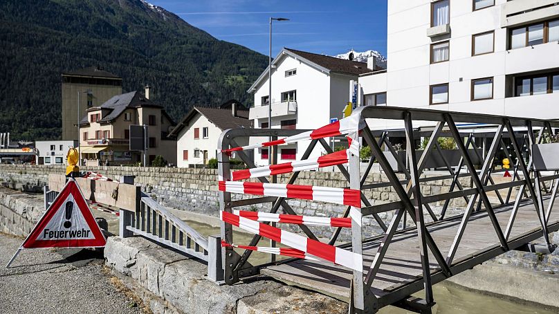 Les autorités ont commencé à démanteler les ponts piétonnes et à renforcer les infrastructures critiques pour préparer d’éventuelles inondations à Gampel et les résidents ont été invités à organiser des logements d’urgence en cas d’évacuation.