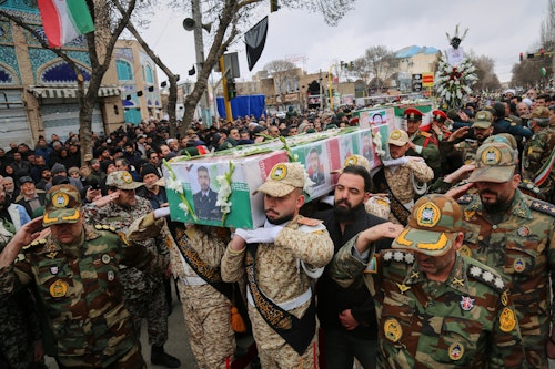 Funerals for members of Iran’s security forces were also held across the country. On Wednesday, hardliners gathered in town squares and intersections to mourn and express support for the theocracy, while blasting religious songs from their cars.