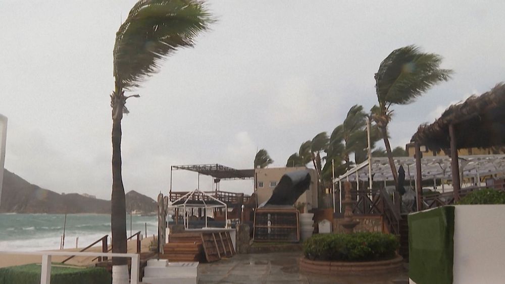 Les météorologues s’attendaient également à ce que la tempête produise des courants de surf et de déchirure «mortels», y compris des vagues atteignant 12 mètres de haut, le long de la côte pacifique du Mexique. Des dizaines de personnes ont cherché refuge dans des abris contre les tempêtes dans les stations balnéaires jumelles de Los Cabos, à la pointe sud de la péninsule de Baja, et les pompiers ont secouru une famille à San Jose del Cabo après que la station a été frappée par la pluie et le vent.