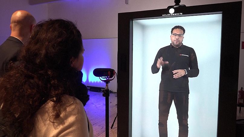 La société néerlandaise Holoconnects a montré comment son Holobox, un écran LCD 4K transparent de 86 pouces permettant une projection holographique grandeur nature et réaliste, peut être utilisée dans les lieux de conférence, les hôtels et bien plus encore.