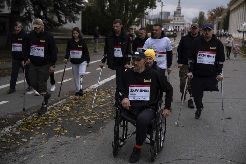 Volodymyr Rutkovskyi, un vétéran de 31 ans, a terminé le parcours à pied. À la mi-juin, il a été grièvement blessé lorsqu’un projectile russe a touché sa jambe droite lors de la contre-offensive ukrainienne dans la région de Zaporizhzhia.