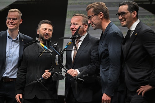 German Defence Minister Boris Pistorius and Ukrainian President Volodymyr Zelenskyy have paid a visit to drone producing company Quantum Frontline Industries, based near Munich.