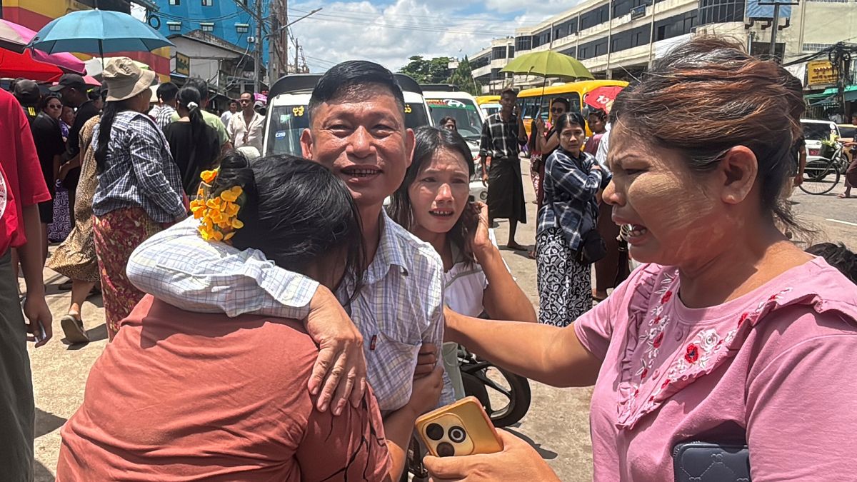 Au moins 19 bus transportant des prisonniers ont quitté la prison d’Insein de Yangon et ont été accueillis devant la porte par des membres de la famille et des amis qui attendaient depuis tôt le matin.