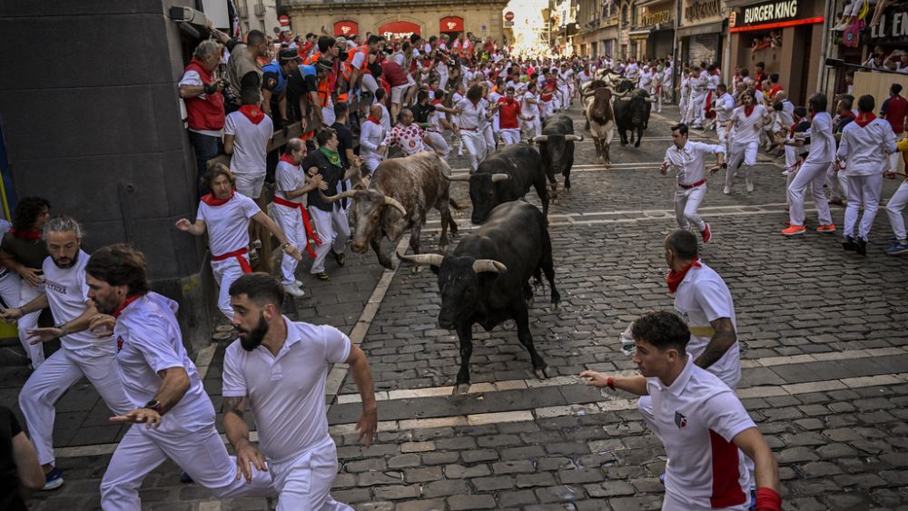 À Pampelune, en Espagne, onze personnes ont été blessées et sept transportées à l’hôpital après la quatrième course de taureaux au festival de San Fermin.