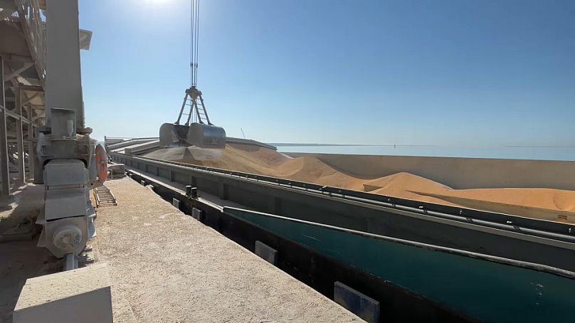 Reni en Ukraine est l’un des seuls endroits de ce type encore en activité dans le pays et reste une plaque tournante clé pour l’exportation de maïs, de blé et d’autres cultures ukrainiennes.