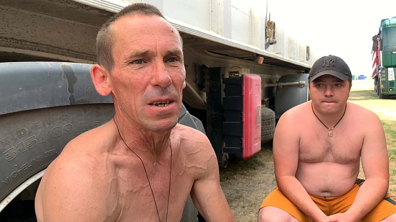 Le chauffeur Vitalii et son fils Bohdan ont été retardés à Reni pendant des jours en attendant de décharger leur camion.