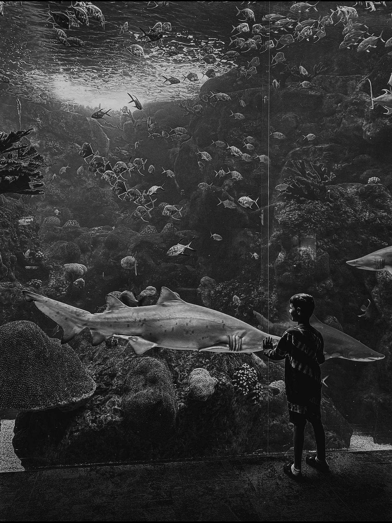 S’élevant au-dessus d’un impressionnant groupe de talents, la superbe photo de la photographe américaine Erin Brooks montrant un jeune garçon debout, émerveillé, devant un requin massif, a remporté le Grand Prix