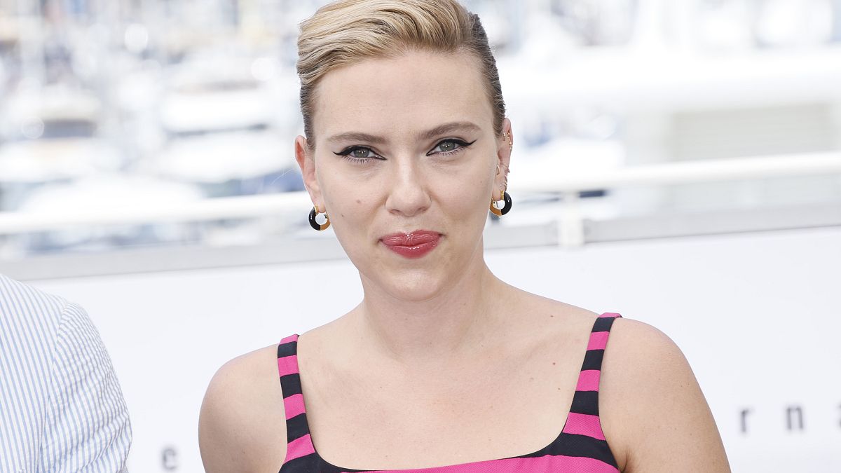Scarlett Johansson poses for photographers in Cannes, 2023.