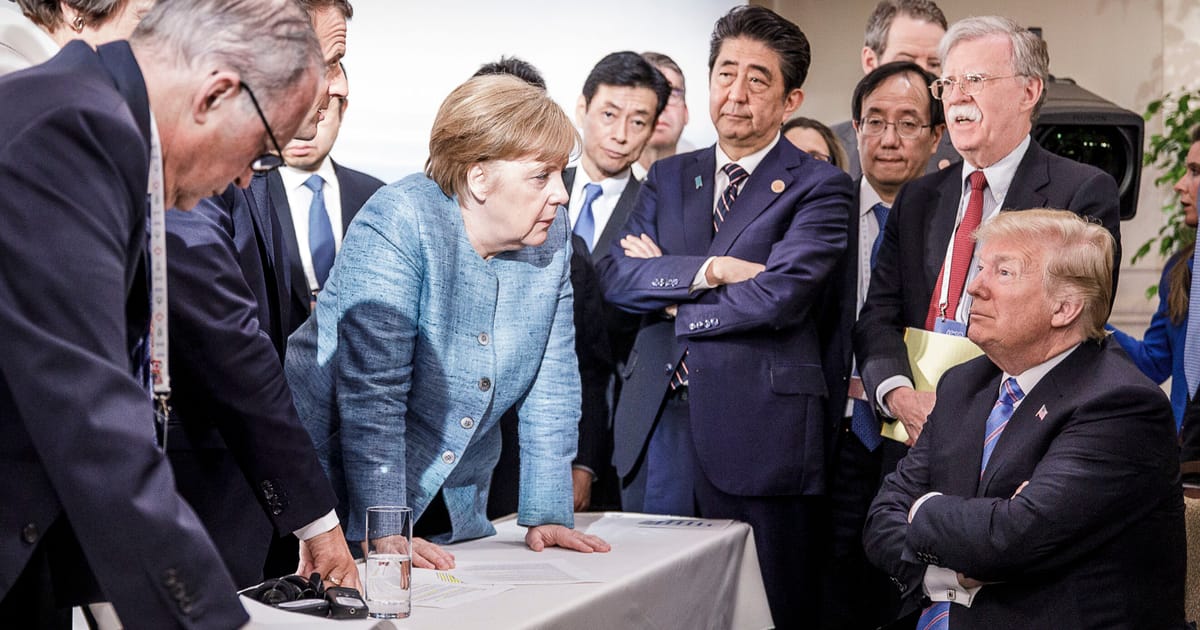 L’hôte Canada se souvient seulement trop de la façon dont une approche de style G6 ne fonctionne pas – une photo emblématique du sommet 2018 montre Trump entouré d’autres dirigeants, assis avec ses bras croisés. L’Angela Merkel, la chancelière allemande, se profile sur lui, ses mains pressant sur une table, son expression faciale révélant une exaspération.