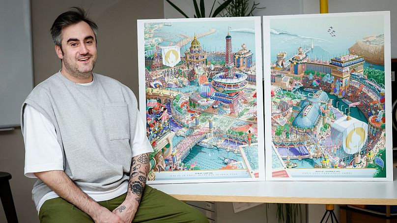 Paris 2024 a engagé l’illustrateur français Ugo Gattoni, connu pour son style dynamique, pour concevoir les affiches. Il a passé au total 2 000 heures à créer les deux affiches qui représenteront les Jeux Olympiques et Paralympiques de Paris 2024.